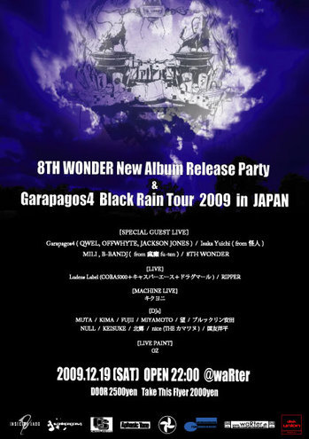 花を添える共演陣には、アンチコンの系譜に属するシカゴからの刺客 『Garapagos4』が『Black Rain Tour』と称しこのRELEASE PARTYに SPECIAL GUESTとして参戦。